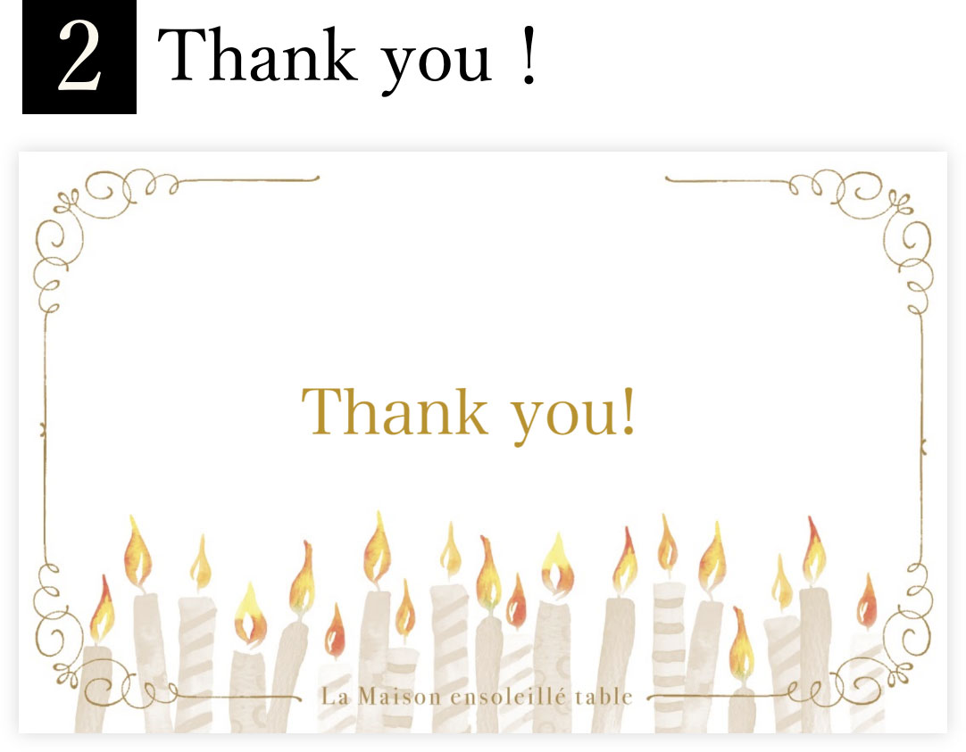 タルト、ケーキにはメッセージカードを無料でお付けすることができます。商品ごとのオプション選択にて、用途を選択してください。