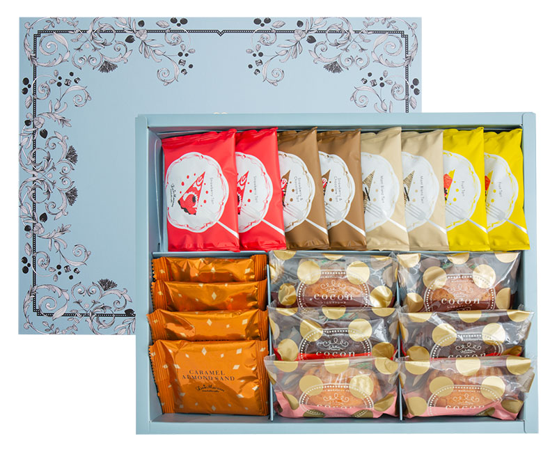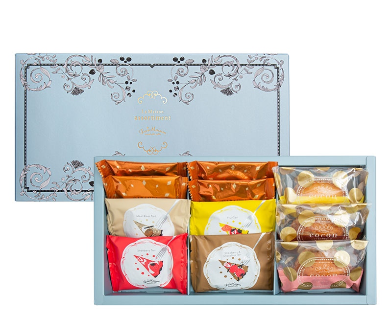 | 内容量 | ●タルティ・メルティ いちごとチョコレートのタルト 2枚 ●タルティ・メルティ いちごのタルト 2枚 ●タルティ・メルティ フルーツタルト 2枚 ●タルティ・メルティ モンブランタルト 2枚 ●しっとりマドレーヌココン ベルギーチョコレート 2個 ●しっとりマドレーヌココン いちご 2個 ●しっとりマドレーヌココン イタリアマロン 2個 ●キャラメルアーモンドサンド 4枚 |