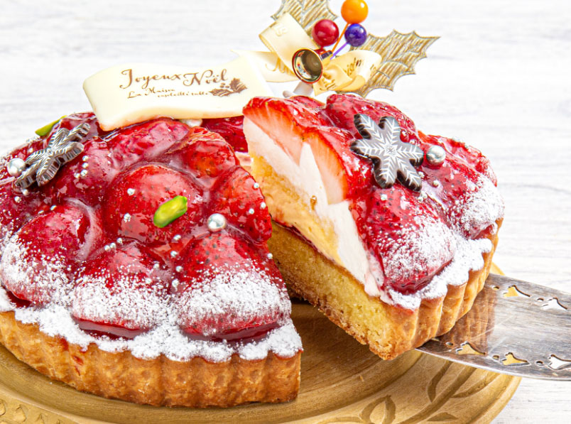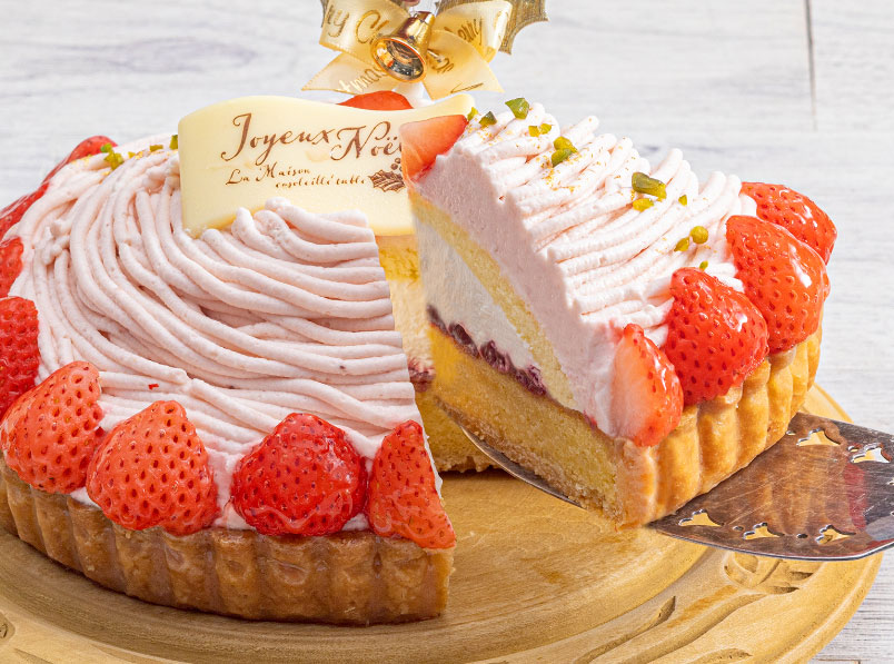バター香るサクッと香ばしいアーモンドタルトに、カスタードクリーム、ミルククリームの2種のクリームを重ね、甘みが強く赤色が美しいいちご「とちあいか」を飾って仕上げました。