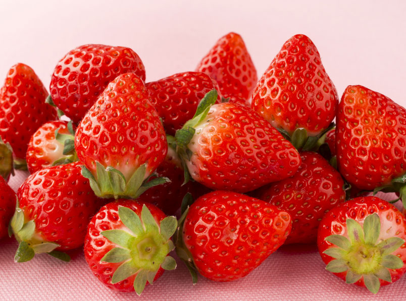 濃い赤色の果皮が美しく、形は丸みのある三角形。香りが良く、酸味が少ないため甘さが際立ちます。